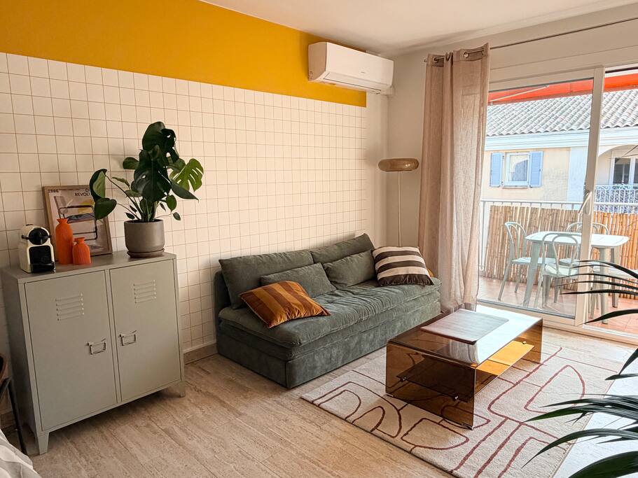 Appartement entièrement rénové avec goût, juste derrière le port de Sanary, à 6 min à pied de la plage de sanary et 8 min de celle de Portissol. Une fois arrivés, plus besoin de prendre la voiture, tout se fait à pieds, vous pourrez profiter à fond de la super ambiance et de toutes les activités de Sanary ! L’appart est tout confort, avec une super literie, la Clim et des équipements tout neufs. Et la terrasse est super agréable pour les apéros de retour de plage !
