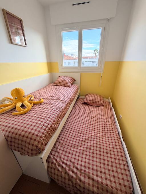 Accès à tout l'appartement et à la terrasse. Seul un placard dans la chambre parentale est fermé (stocks de linge et consommables).