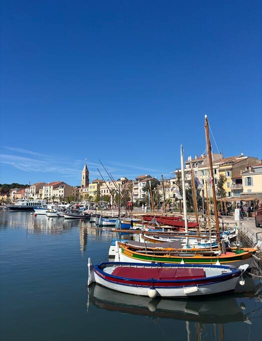 🚶 À pied : Tout se fait à pied ! Port, plages, marché, restos, commerces. 🚗 Voiture : Pas nécessaire une fois sur place. 🚌 Bus : Lignes locales vers Bandol, Toulon, Six-Fours. Arrêt à 5 min à pied. 🚆 Train : Gare Ollioules-Sanary à 5 min en voiture. Gare TGV Toulon à 20 min. 🚴 Vélo : Ville plate et agréable à vélo. Location possible sur place. ⛵ Bateau : Navettes maritimes en été vers Bandol et les îles (Embiez, Bendor).