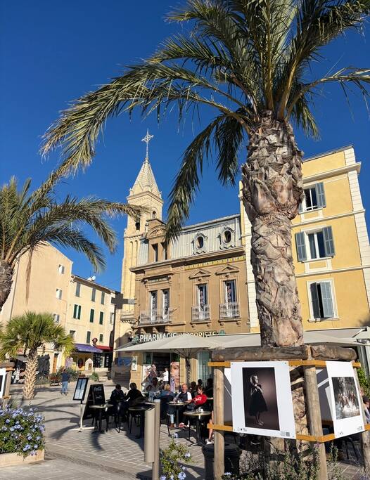 Sanary-sur-Mer, c'est le charme provençal à l'état pur ! ⚓ Le port : élu #1 de Méditerranée (Navily 2024), à 4 min à pied. Restos, glaciers, ambiance animée. 🛒 Le marché : tous les jours sur le port ! Le dimanche c'est le plus grand, élu "Plus beau marché de France" (TF1). 🏖️ Les plages : Portissol et Le Levant à 8-11 min à pied, label Pavillon Bleu. 🌞 Le climat : 3 450h de soleil par an, record national ! 🍷 L'ambiance : ruelles fleuries, boutiques, restos, apéros au coucher du soleil sur le port. Idéal pour les familles (ville très kids-friendly) et les couples en escapade romantique.